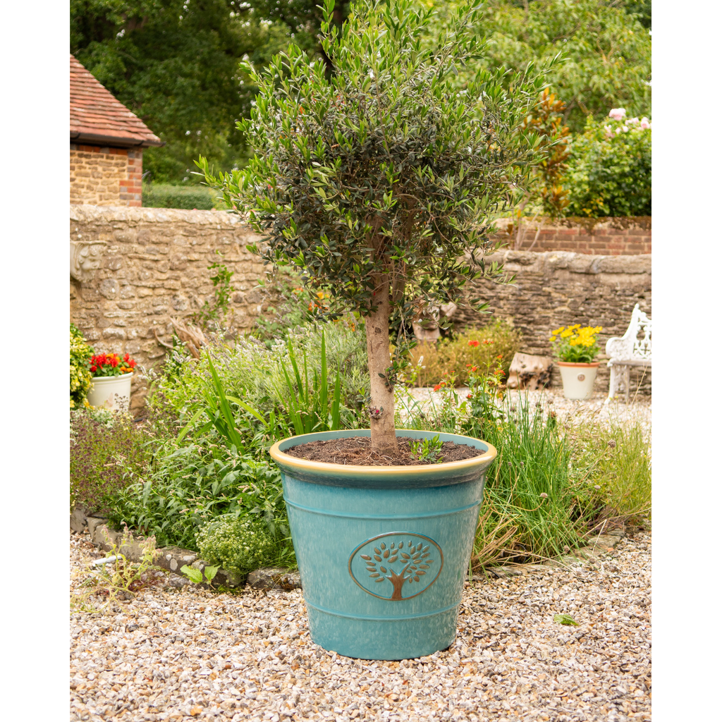 Make a bold statement with the impressive 75cm Ascot Pot in Aqua. Its spacious design and refreshing aqua tone make it ideal for showcasing standout plants such as lush hydrangeas, vivid blue delphiniums, or trailing ivy. Crafted from durable, weather-resistant materials, it delivers both style and strength—perfect for patios, terraces, or garden entrances that need a vibrant splash of color and ample planting space.