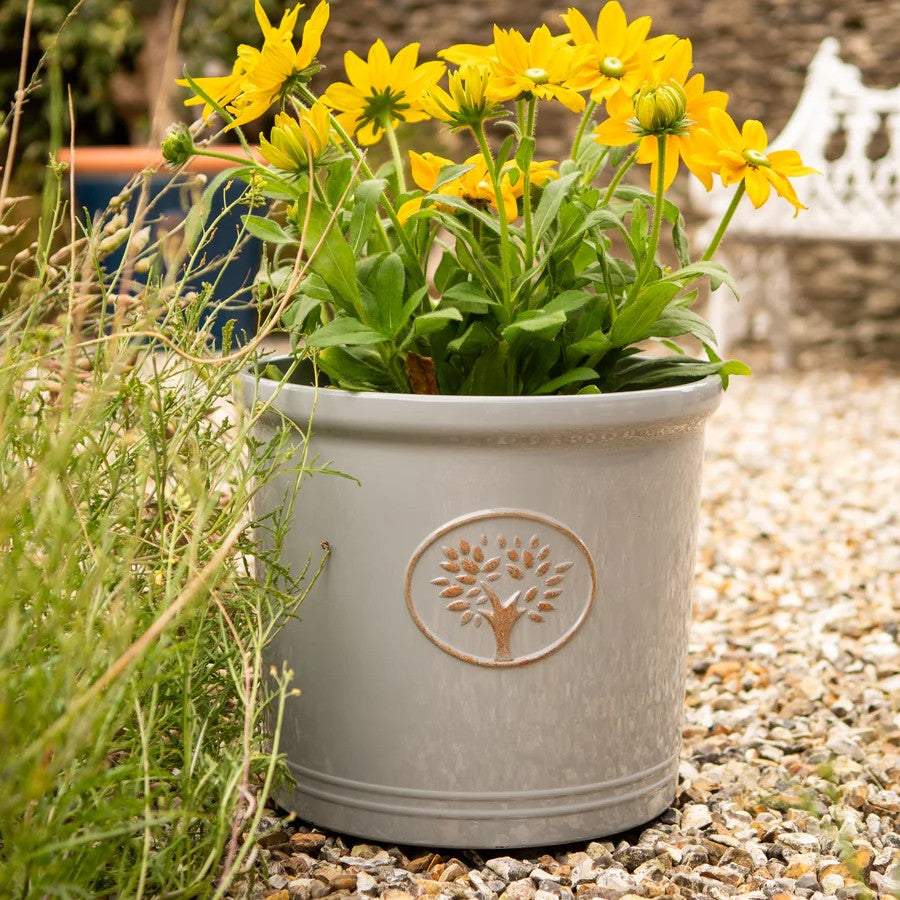 Inspired by the soft hues of Cotswold stone and the quiet beauty of misty mornings, this elegantly glazed planter brings subtle sophistication to any outdoor space. Its versatile grey tone complements a wide range of planting styles — from vibrant seasonal blooms to sculptural evergreens — blending seamlessly into both contemporary and traditional garden settings.