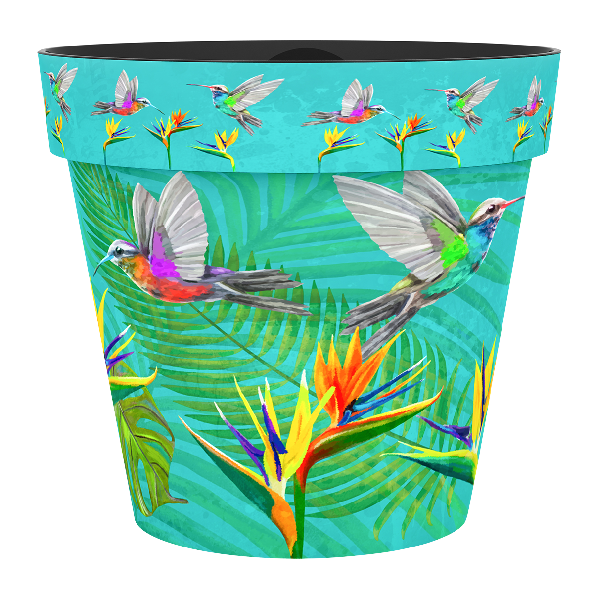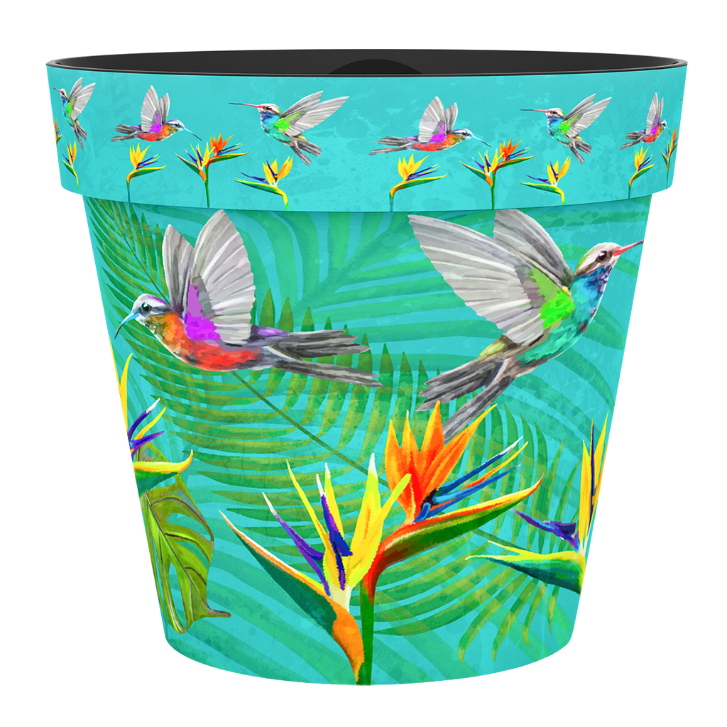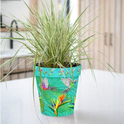 Immerse yourself in the vibrant beauty of the tropics with our Zest Pot – Hummingbird. Inspired by the dazzling landscapes of faraway rainforests, this design captures the delicate splendour of the hummingbird — a symbol of joy, energy, and the magic of life in motion. Surrounded by lush foliage and bursts of exotic blooms, the iridescent hummingbird seems to hover effortlessly, bringing a sense of wonder and vitality to any space. Each glance evokes the rhythm of tropical breezes, the scent of wild flowers, and the vivid colours of nature in full bloom. The Hummingbird Zest Pot is more than a vessel for your plants — it’s a celebration of beauty, grace, and the spirit of the exotic world where these tiny marvels take flight.