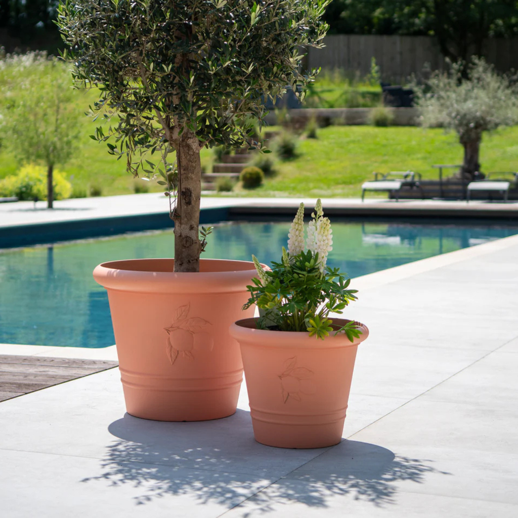 Our collection of terracotta planters brings timeless Mediterranean charm to any outdoor space. Available in three sizes, they offer versatile planting options for patios, terraces, and gardens. Choose from three distinctive designs: the Classico, with its clean lines and subtle detailing; the Fleur, featuring a delicate three-leaf relief; and the Sicilia, adorned with a carved lemon-and-leaf motif reminiscent of sun-drenched Mediterranean orchards.