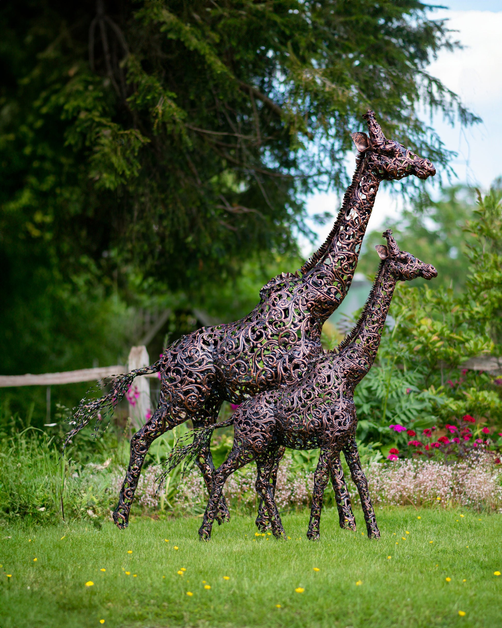 Elevate your outdoor decor with the captivating Bronze Giraffe Sculpture - Large. This elegantly handcrafted piece showcases intricate filigree detail and a stunning bronze finish, making it a standout addition to any garden, patio, or poolside setting. Crafted from weather-resistant materials, this sculpture is built to endure the elements while adding a touch of wildlife charm to your outdoor space. Ideal for enhancing your garden collection, whether displayed as a focal point or as part of a larger arrangement, this bronze giraffe sculpture is sure to enchant and impress.