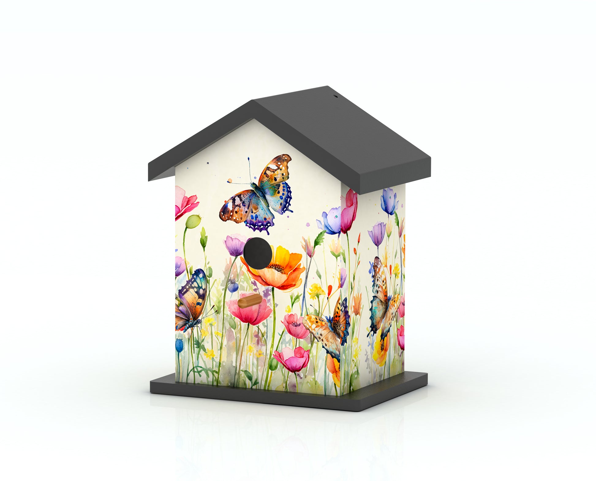 Crafted for both style and functionality, this birdhouse offers a cosy retreat for birds while enhancing your outdoor decor. Imagine the enchantment of watching colourful butterflies and birds flutter around, creating a lively atmosphere in your garden. Let the Butterflies Birdhouse inspire your love for nature and gardening, making it a perfect addition to your outdoor space that celebrates the beauty and wonder of wildlife!